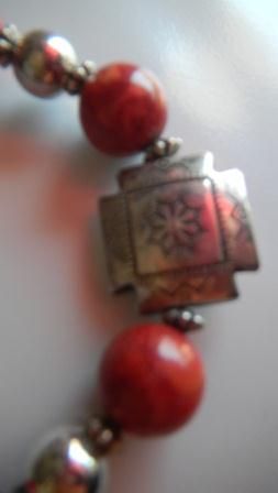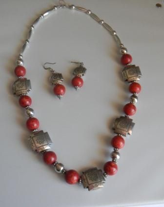 Navajo Sterling and Coral necklace 22 inches with matching earrings. New condition from 1950's Mint