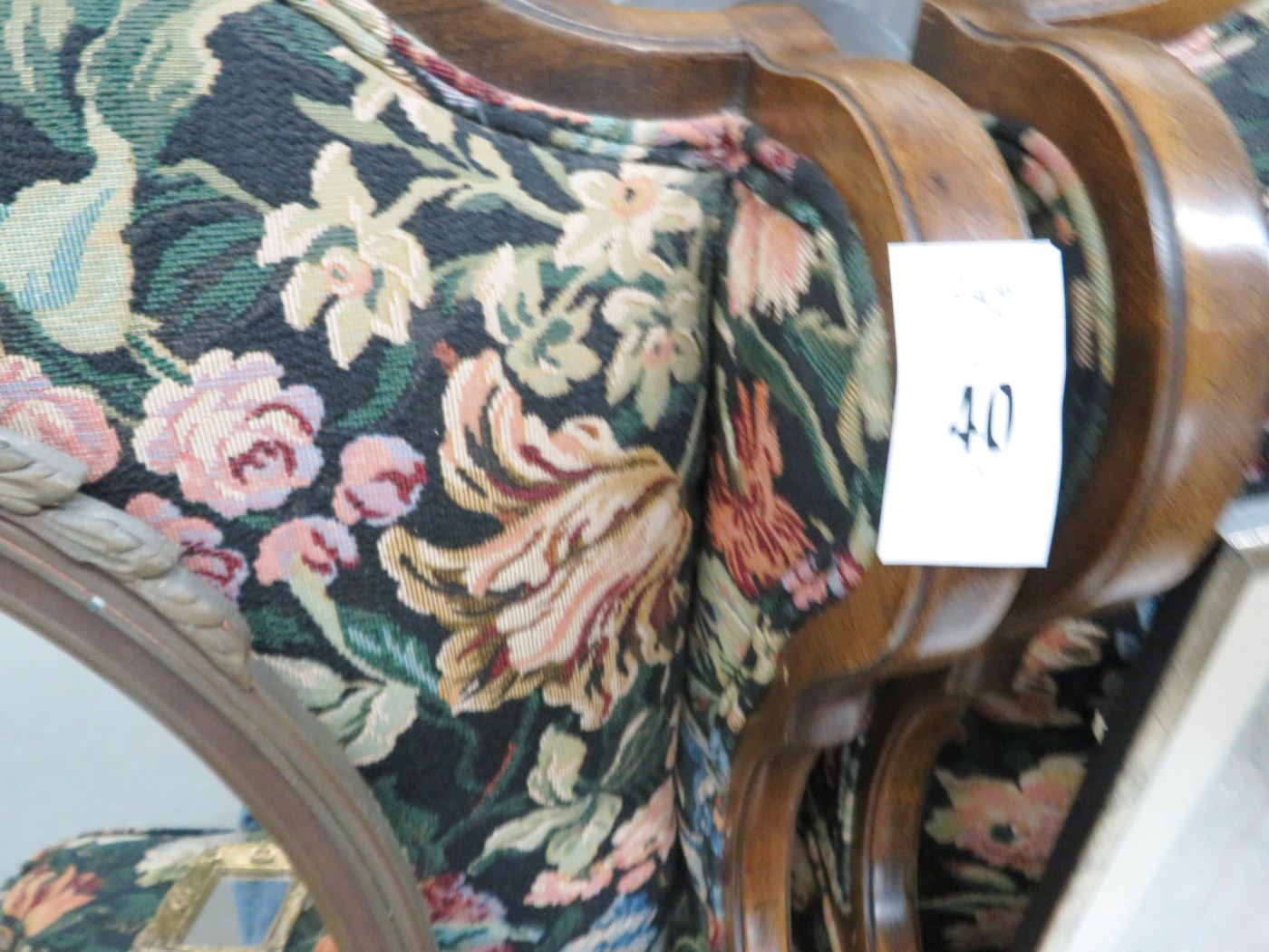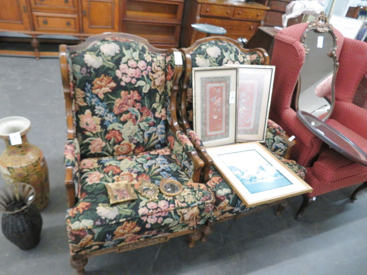 Needlepoint Print Floral Motif Wingback Chairs - Pair