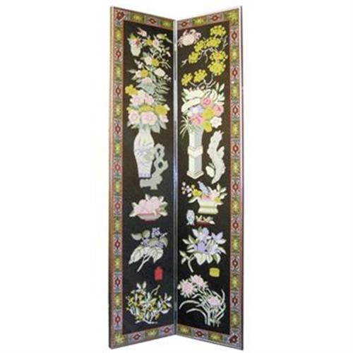</font></strong>This vintage room divider has a wooden frame and features an exceptional needlepoint design depicting floral bouquets, flowers in vases, fruit and a crab. Each panel measures 78" tall by 16.75" wide by approximately 1.25" deep. Believed to date from the 1960s or 1970s. Excellent condition. Needlepoint is clean with no visible stains.