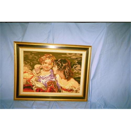 A French stunning classic- "Les Enfants Calmady" highlighted gorgeously in hand done needlepoint the way of the Middle Ages. FREE FREE FREE to winning bidder is the gorgeous frame is 25.25 x 20.25. A very rare treasure indeed.... Hand made needlepoint surrounded by a gorgeous frame that highlights the detail of skill to recreate such a fine masterpiece that is loved and admired the world over.Manifique!