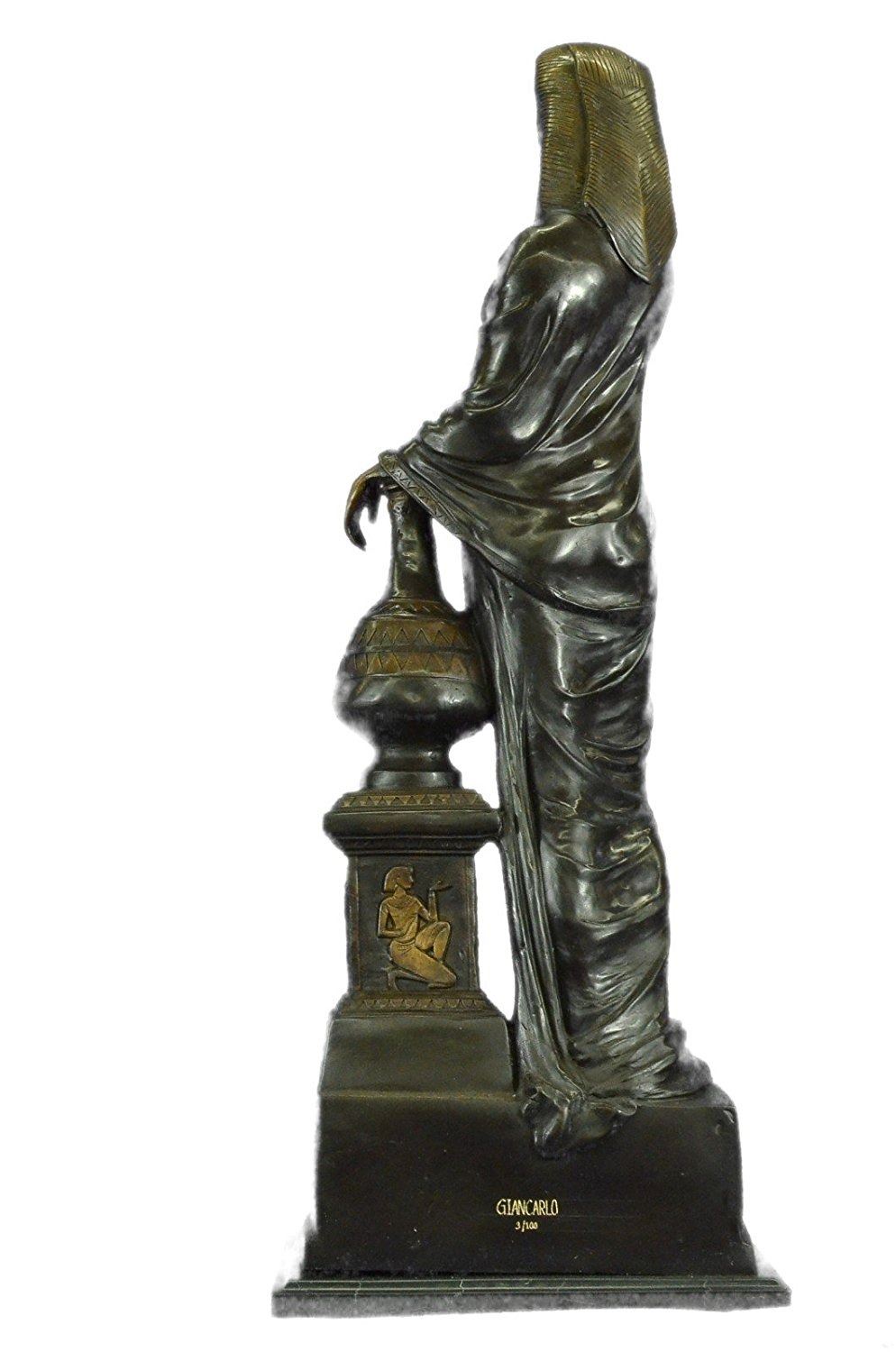 This bronze Sculpture of the famous queen of Egypt Nefertiti. Nefertiti translates to the beautiful one is to come Her head is decorated with a high head dress. Her chin is pronounced, her nose is straight and narrow. The look in her eyes is majestic and powerful. Nefertiti and her husband were known for a religious revolution, in which they started to worship one god only. Some scholars believe that Nefertiti ruled briefly after her husband's death and before the accession of Tutankhamun, although this identification is a matter of ongoing debate. She was made famous by her bust and you can now own your very own original of this historic piece of art. This features the lost wax method of casting, founded thousands of years ago, ensuring an exquisitely detailed sculpture. That will add grace and beauty to your business or home. Bronze Dimensions with Marble Base: Height 37 X Width 14 inches. Weight: 53 LBS. Inventory: 275590031072