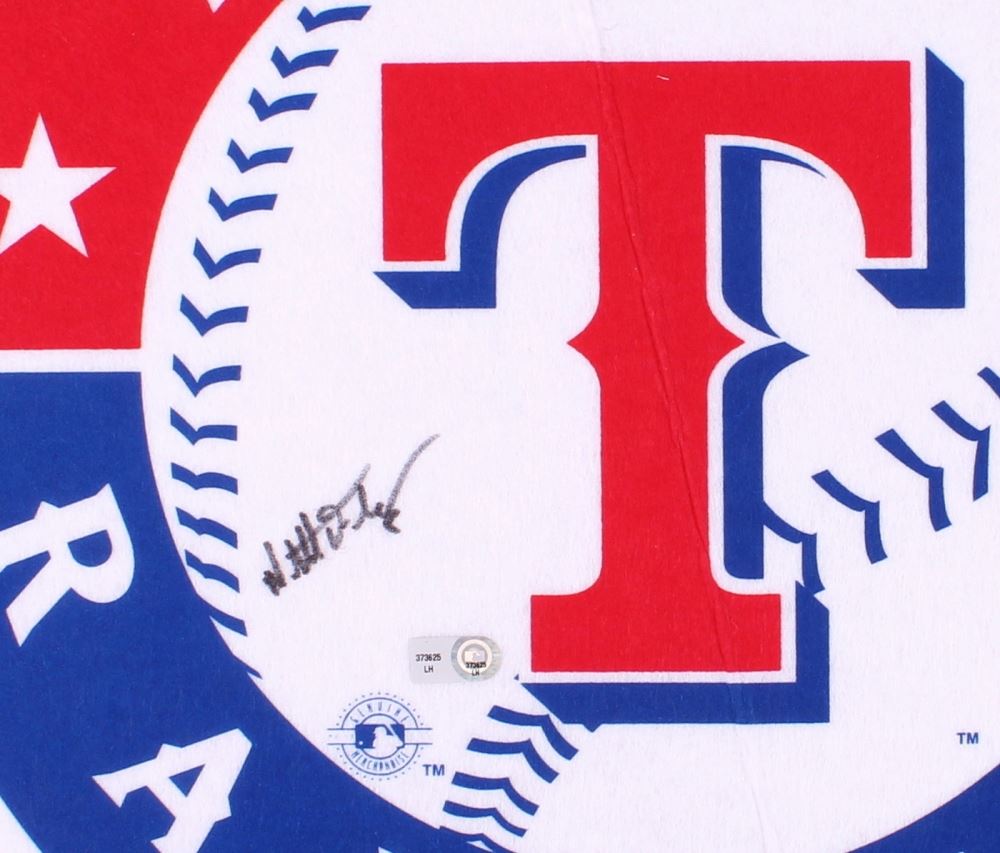 Texas Rangers Souvenir Pennant measures 14.5" in diameter and is hand-signed in black felt-tip pen by Neftali Feliz (Tigers). The autograph includes an official MLB Authentication hologram for authenticity purposes.