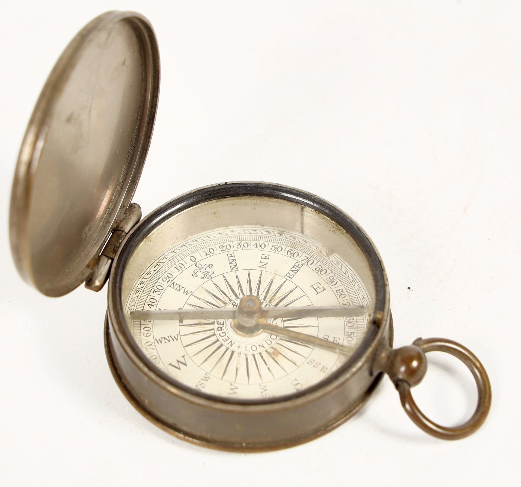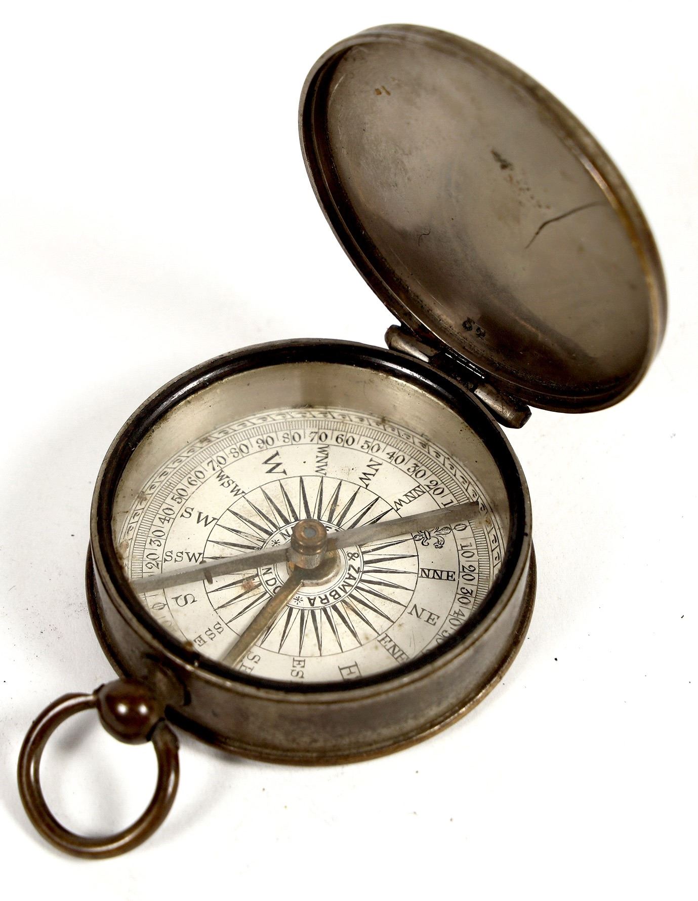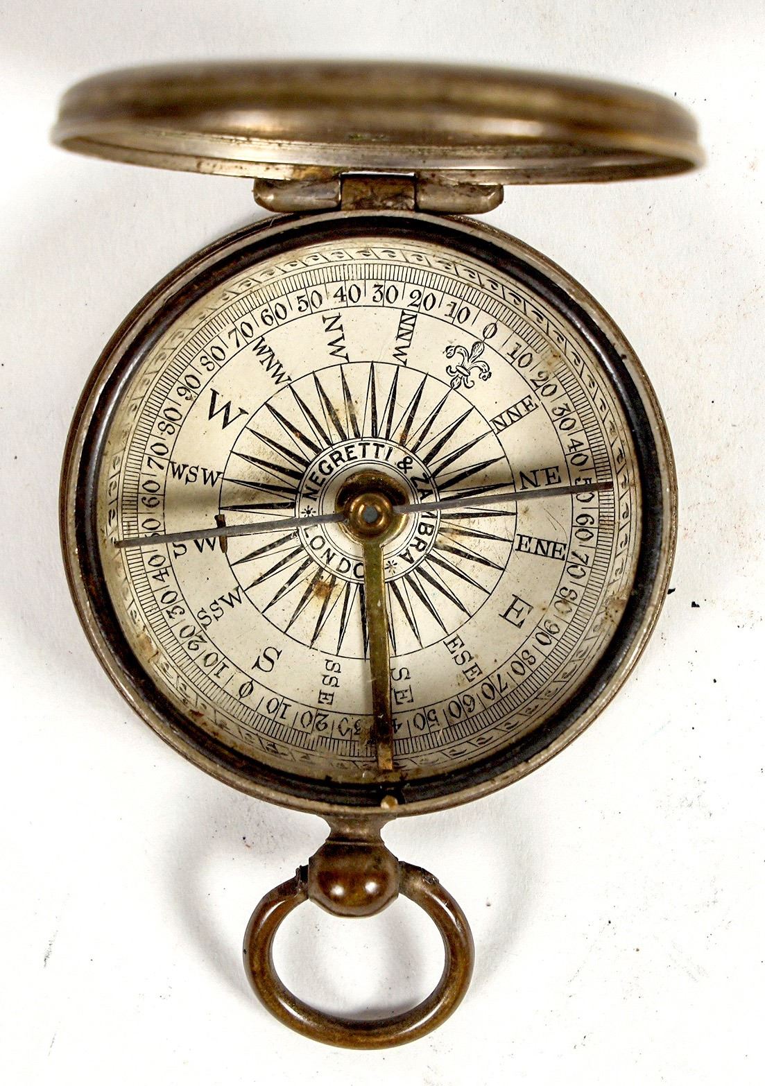 This is a pocket compass marked "Negretti & Zambra London: "G.P.O./122" on the cover. Negretti & Zambra was located at 122 Regent St. in London and made precision instruments. It has a beautiful card. It works well. At 1.75 in. in diameter. From the Popovich collection. Please see photos for details. C.1900.