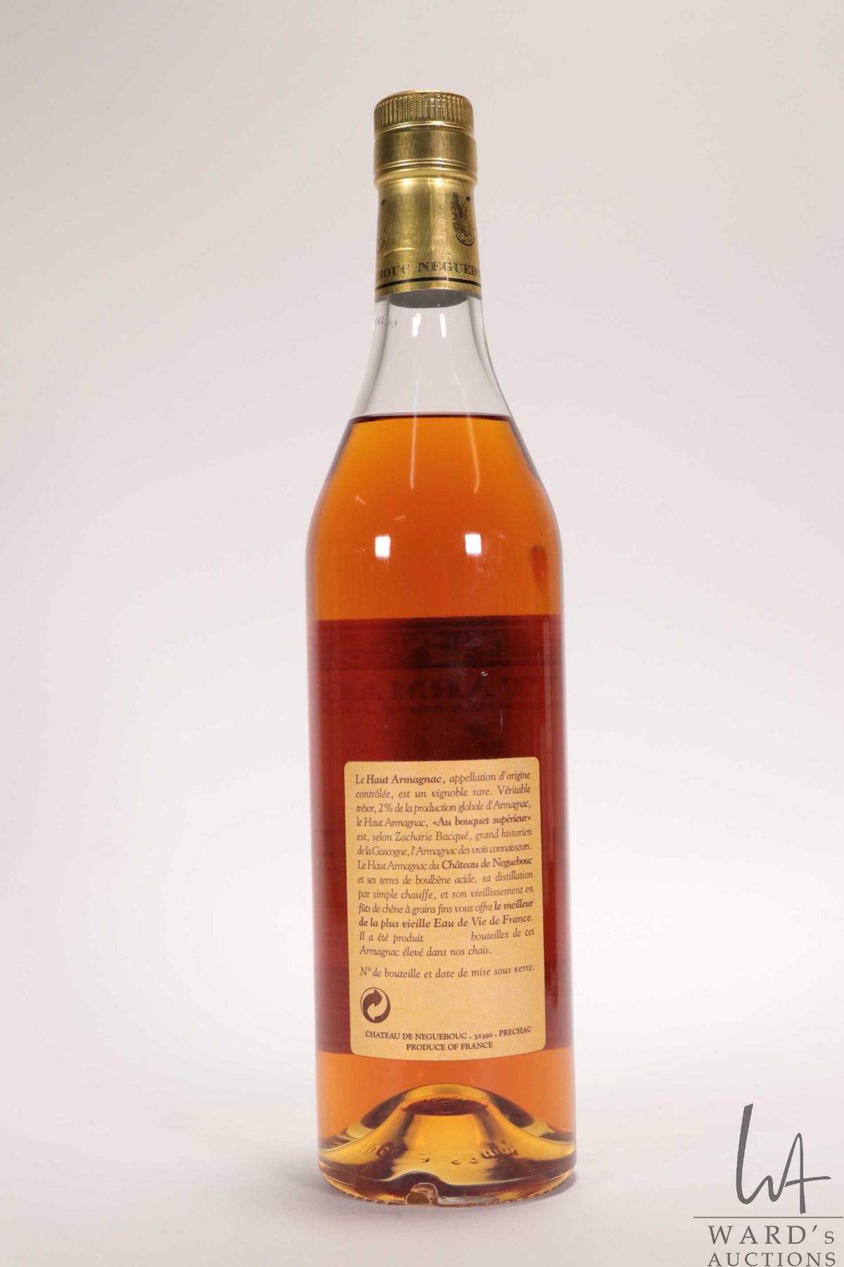 Neguebouc/ Haut Armagnac/ 700ml/ 43.2% ABV Note: Alcohol cannot be insured by any courier in Canada. Local pick up is recommended. Canadian bidders only.