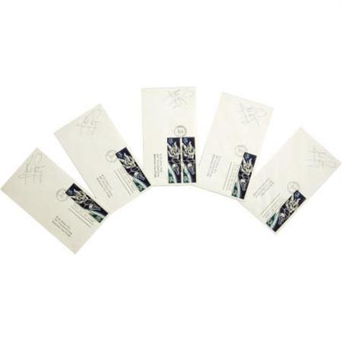 <B>Neil Armstrong - Lot of Five Signed First Day Covers</B></I> postmarked September 29, 1967, at the Kennedy Space Center, Florida celebrating the release of Scott #1331-1332. This <I>se tenant</B></I> pair of stamps picture an astronaut walking in space tethered to a Gemini space capsule and commemorate the first U.S. walk in space by Ed White of Gemini 4. Neil Armstrong, of course, was the first human to step foot on the moon on July 20, 1969. He had also been command pilot of Gemini 8. None of these covers are cacheted and all have the stamped address of Dr. Coons beneath the stamps. Four contain a pair of stamps and one has a block of four. Armstrong neatly signed all on the left side in blue ink. Very fine condition. <I>From the estate of Dr. D. Owen Coons, Chief of NASA's Manned Spacecraft Center Medical Office.</B></I><BR><BR><b>Shipping:</b> Flat Material, Small (<a target="_blank" href="http://www.heritageauctions.com/common/shipping.php">view shipping information</a>)