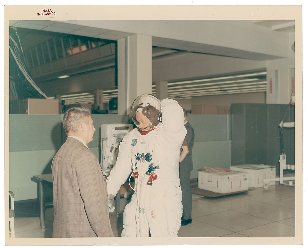 One of the most incredible aspects of the Dan Schaiewitz Collection is the astounding assortment of vintage NASA photographs. As an integral part of KSC’s PLSS training, most notably on the first lunar landing mission, he actually took part in these amazing behind-the-scenes moments: Dan himself tested Armstrong’s space suit. Offered here are exceptionally rare Apollo 11 red-numbered training photographs, many of them quite possibly never-before-seen by collectors and offered here for the first time.