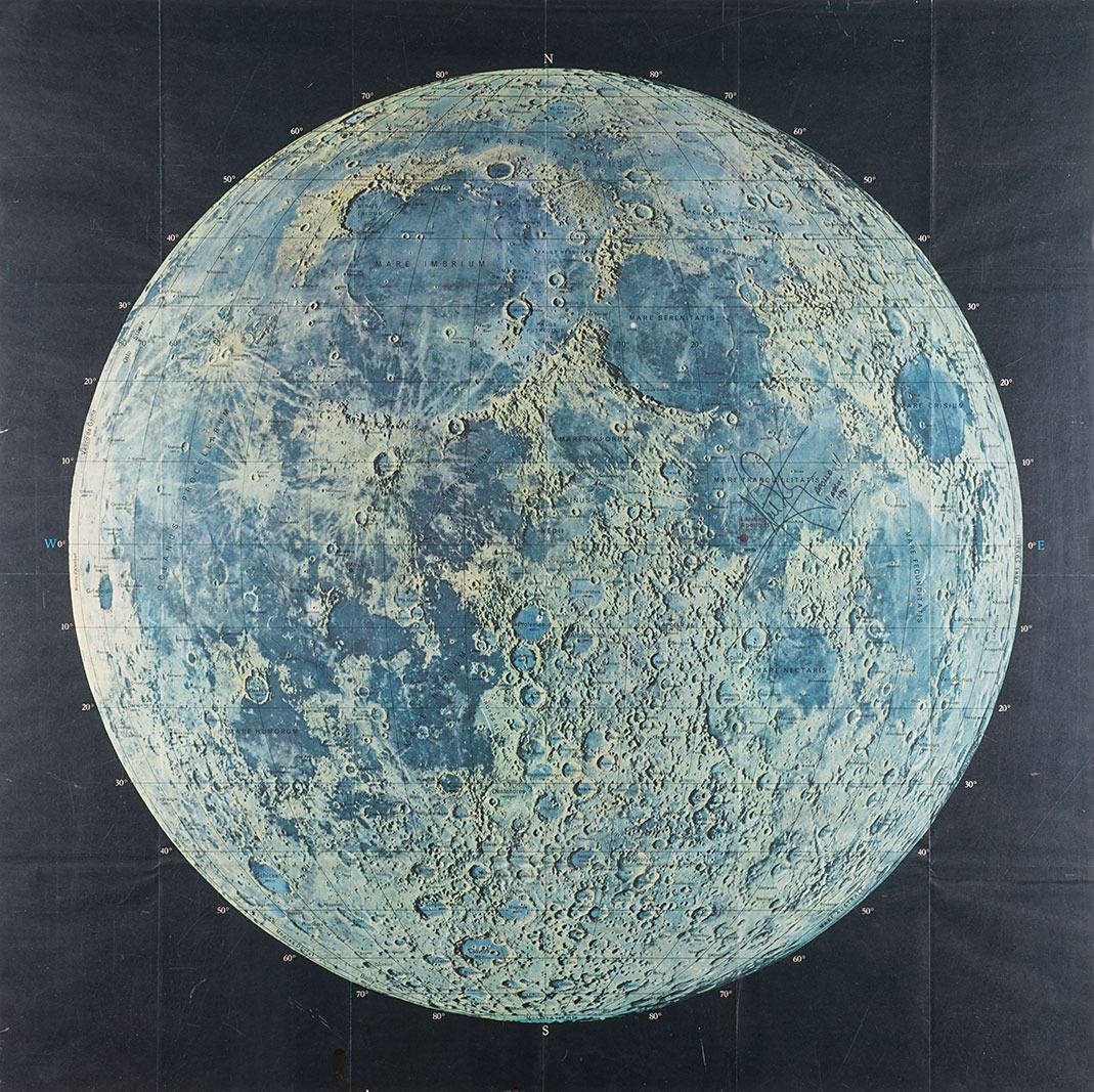 Brilliant vintage Hallwag color poster, 31.5 x 31.5, showing Hans Schwarzenbach's classic 1:5,000,000 scale depiction of the near side of the moon, signed over the Sea of Tranquility landing site in black felt tip, "Neil Armstrong, Apollo 11, 11 August 1970." In fine condition, with folds as issued and evenly trimmed edges. Accompanied by an excellent photo of Armstrong taken at the time of signing. An immensely desirable display piece.