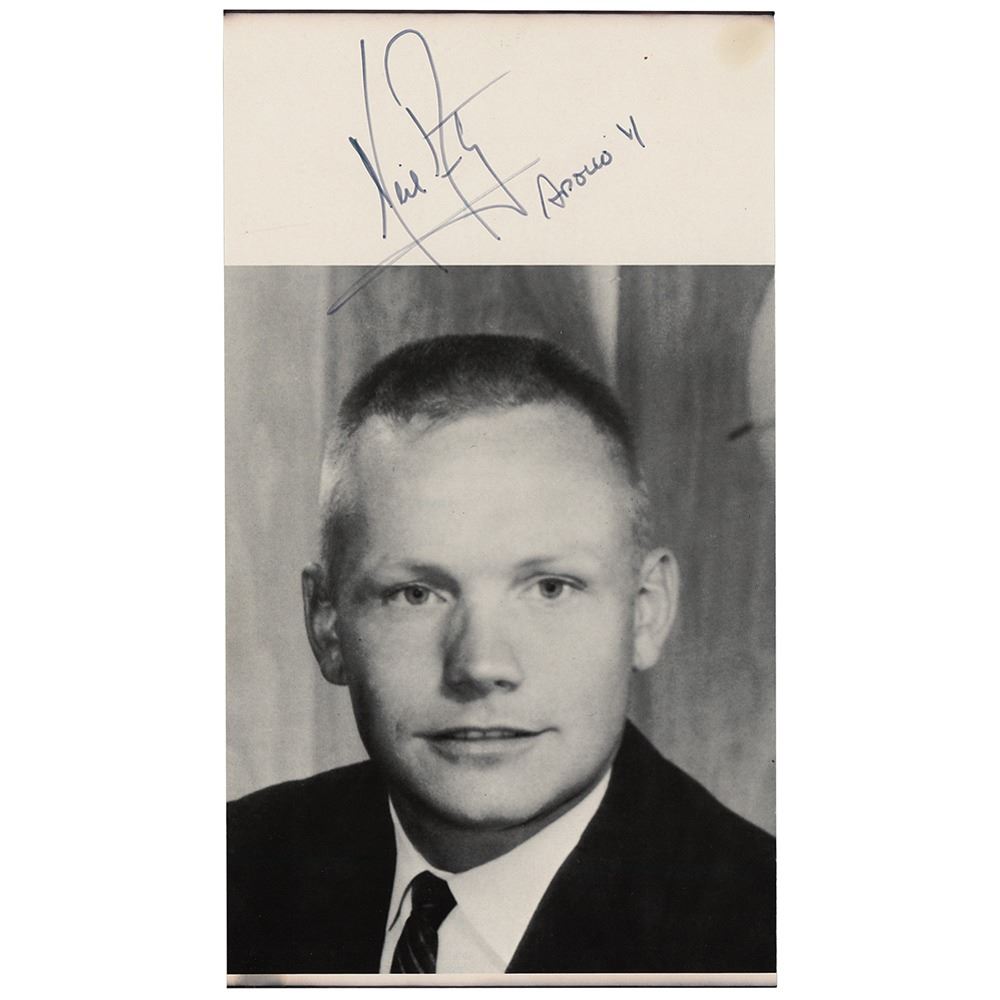 Appealing semi-glossy 5.5 x 9.75 photo of Neil Armstrong clipped from a program for the 60th Annual Meeting of the National Council Boy Scouts of America, desirably signed in the upper border in black felt tip, “Neil Armstrong, Apollo 11.†In fine condition, with scattered light creasing and a couple of small stains. Accompanied by full letters of authenticity from JSA and Zarelli Space Authentication. A youthful and uncommon signed pose from Armstrong, who further complements the autograph by adding his "Apollo 11" mission designation.