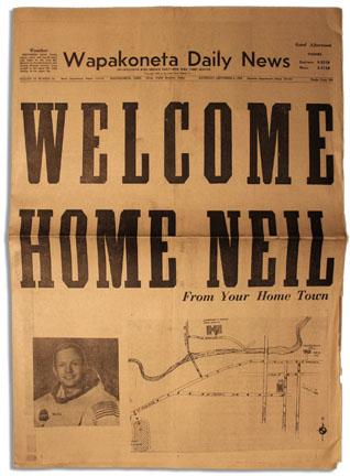 Neil Armstrong Hometown Newspaper -- 6 September 1969 "Wapakoneta Daily News" Issue With Headline, "Welcome Home Neil"