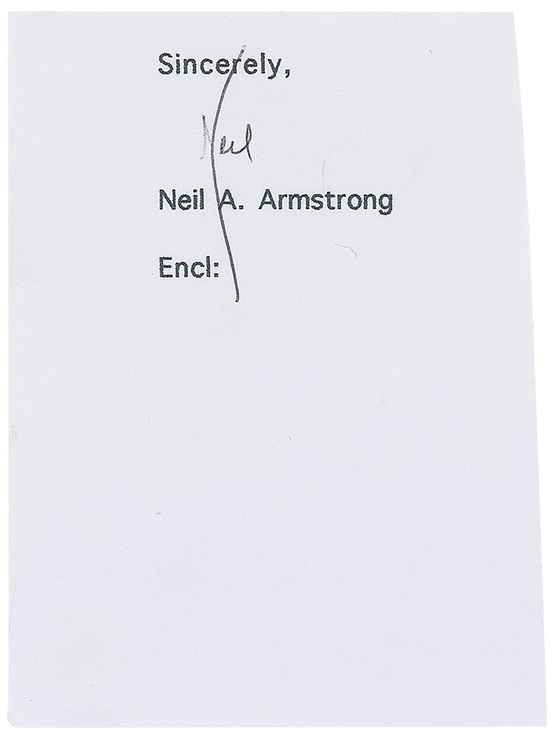 Ballpoint signature, “Neil,” on an off-white 3.5 x 4.5 slip clipped from the closing of a letter. In fine condition.
