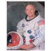 Highly desirable uninscribed official color 8 x 10 NASA lithograph of Armstrong posing in his white space suit against a lunar background, signed in blue felt tip. In fine condition.