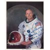 Official color 8 x 10 NASA lithograph of Armstrong posing in his white space suit against a lunar backdrop, signed and inscribed in blue felt tip, “To Sanford G. Oringer, Congratulations on your contributions to scouting—Neil Armstrong.” In very good to fine condition, with light overall rippling and a paperclip impression to the upper left corner.