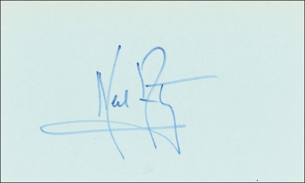 Nice blue felt tip signature, “Neil Armstrong,” on a light blue 5 x 3 card. In fine condition, with a bit of mild edge toning.