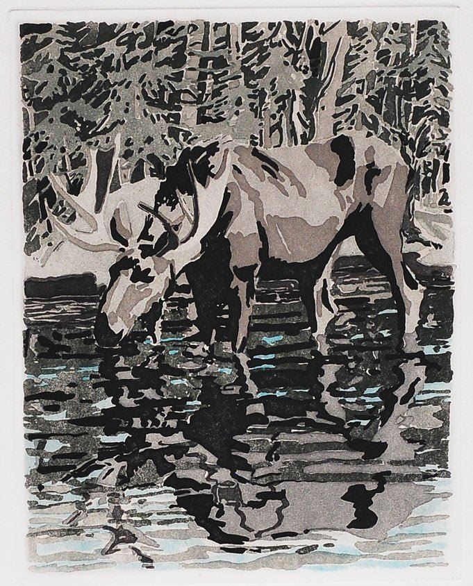 Moose 11" x 8 1/2" woodcut 17 3/8" x 14 1/2" sheet pencil signed lower right edition of 79