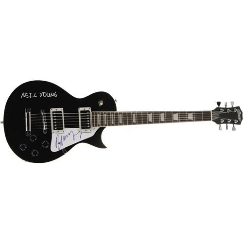 <B>Neil Young Autographed Guitar.</B></I> A black Copley six-string electric guitar signed by Young in blue marker on the pick guard. In Excellent condition.<BR><BR><b>Shipping:</b> Musical Instruments, Large (<a target="_blank" href="http://www.heritageauctions.com/common/shipping.php">view shipping information</a>) <BR><BR><B>Important notice:<