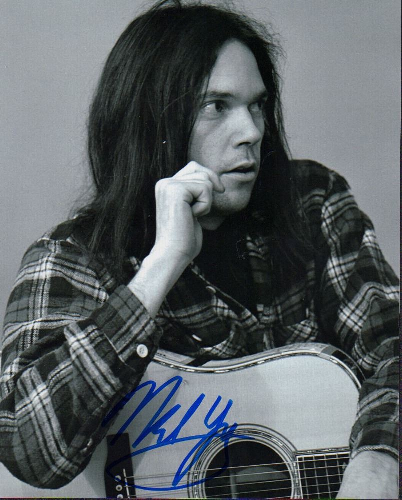 Black and white 8x10 photo signed by Neil Young. All items come with a certificate of authenticity good for the life of the piece.