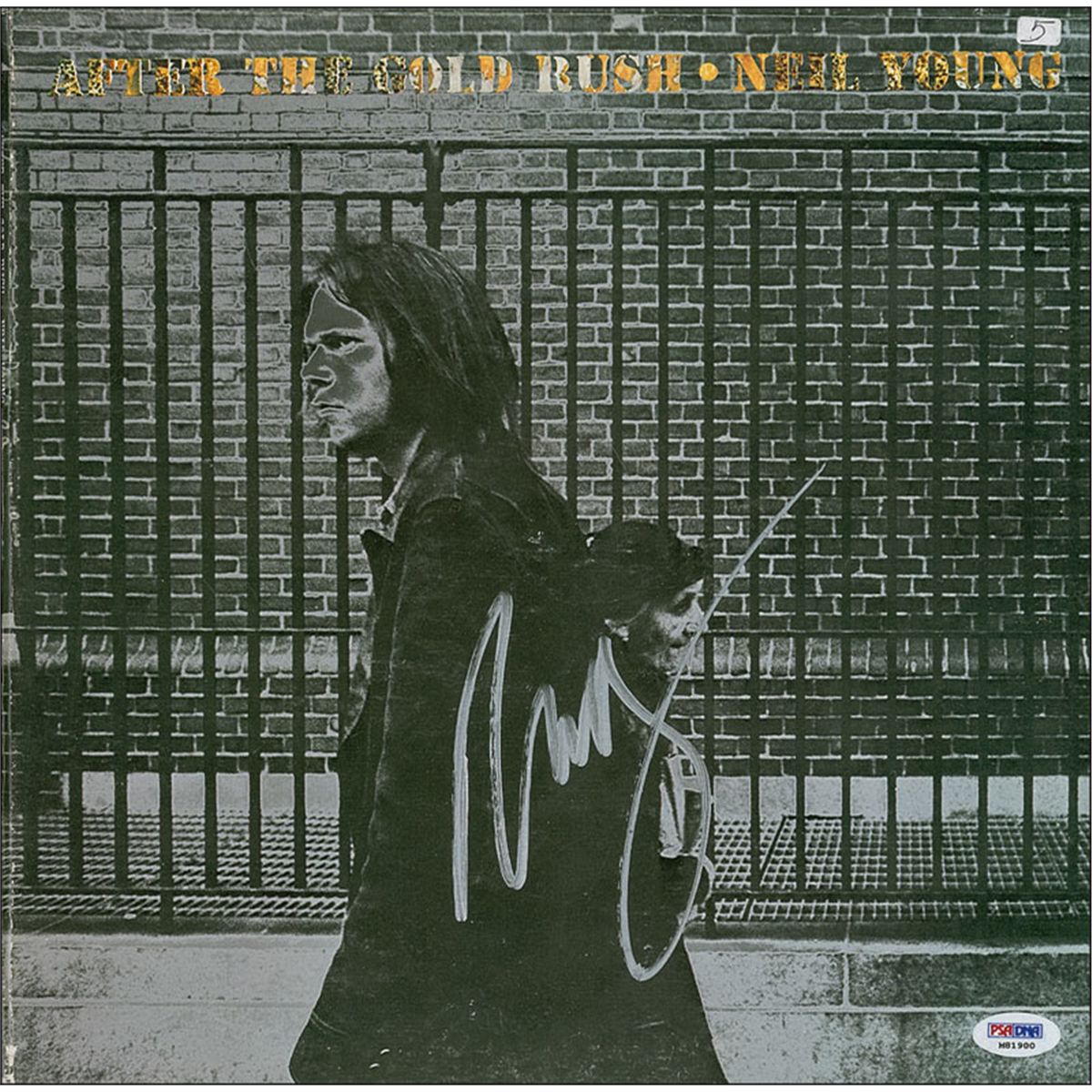 After the Gold Rush album signed on the front in silver ink. Light corner wear, a retail sticker affixed to the top right corner, and a PSA/DNA label affixed to the bottom right corner, otherwise fine condition. The record is not included.