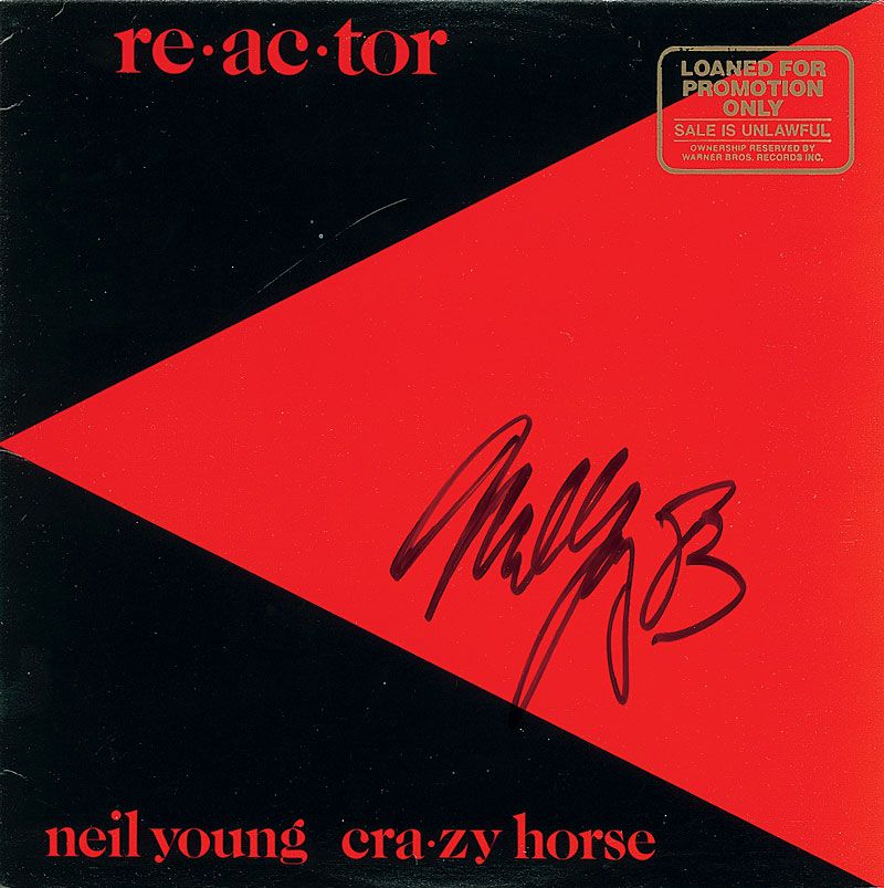 Reactor album signed on the front cover in black felt tip. In very fine condition, with a promo stamp to the upper right. The record is included. Accompanied by a full letter of authenticity from Roger Epperson/REAL.