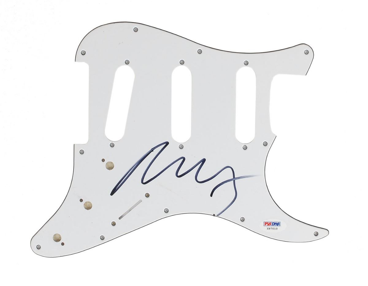 Off-white pickguard for a standard-size Strat, signed in black felt tip by Young. In fine condition. Accompanied by a certificate of authenticity from PSA/DNA.