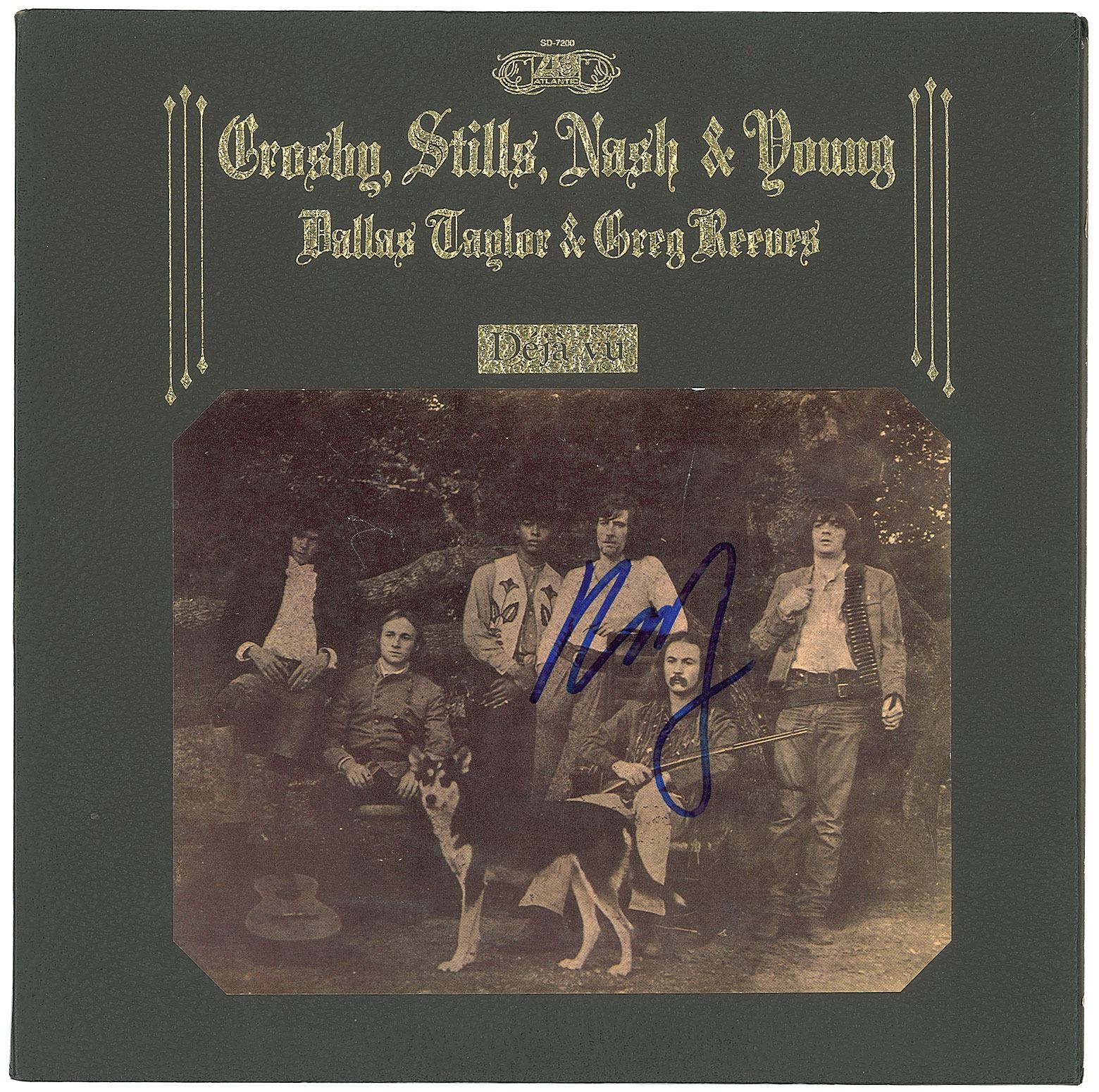 Déjà Vu album signed on the front cover in blue felt tip by Neil Young. In fine condition. The record is included.