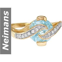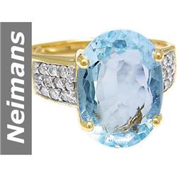 3.14 ct Blue Topaz & Diamond Ring 14kt Gold