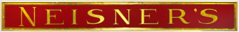 Neisner's reverse paint on glass sign, VG cond in newer metal frame, 7.5"H x 56.25"W.
