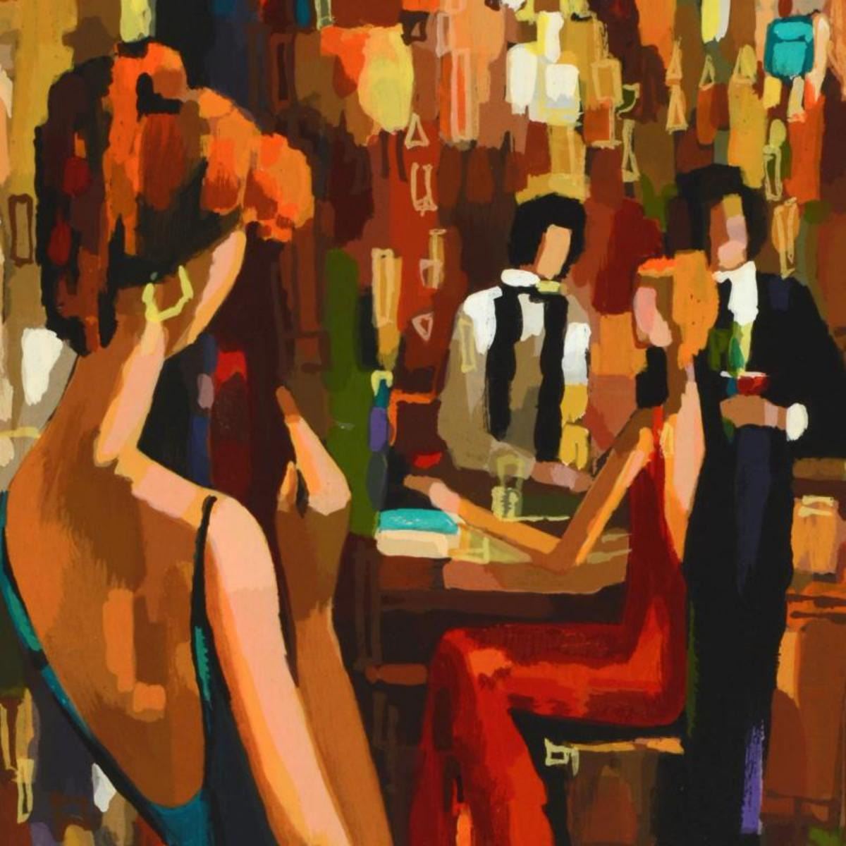 "Late Romance" is a limited edition serigraph on paper, numbered and hand signed by Nelly Panto. Includes Certificate of Authenticity. Measures approx. 12" x 16.5" (border), 10.5" x 15" (image). Reference #: 225340.