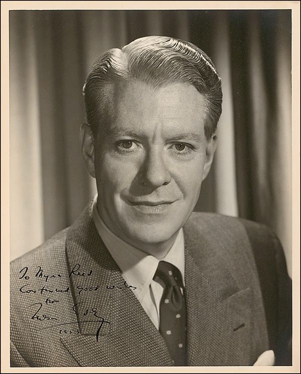Vintage matte-finish 8 x 10 head-and-shoulders photo, signed and inscribed in fountain pen “To Myrna Reed, continued good wishes from Nelson Eddy 1953.” In fine condition, with a couple trivial corner tip creases and a hint of light silvering to one edge.