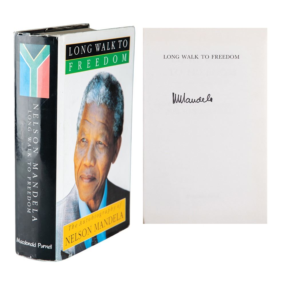 Signed book: Long Walk to Freedom. Randburg, South Africa: Macdonald Purnell, 1994. Hardcover with dust jacket, 6.5 x 9.5, 630 pages. Signed on the half-title page in black felt tip, "N. Mandela." In fine condition, with light dust jacket wear.