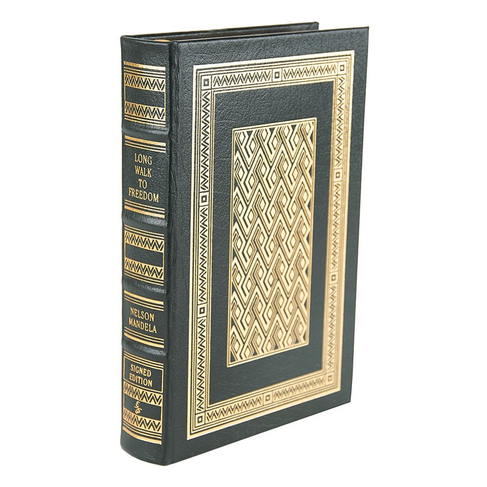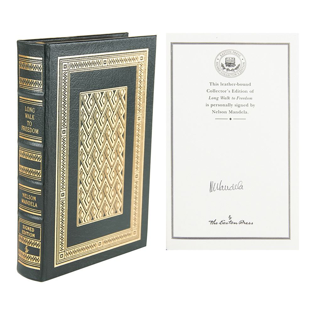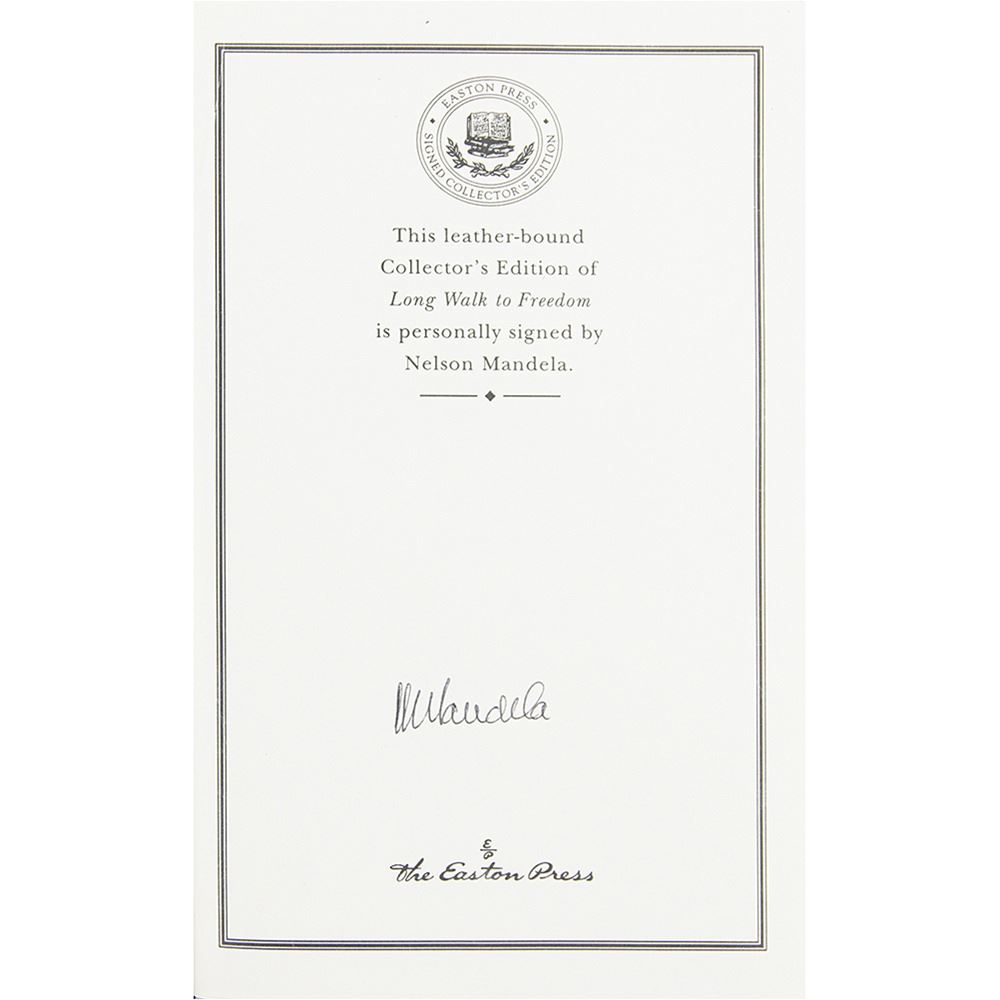 Signed book: Long Walk to Freedom. Collector’s Edition. Norwalk, CT: Easton Press, 2000. Leatherbound hardcover, 6.25 x 9.5, 558 pages. Signed on the colophon in black ballpoint, “N. Mandela.” In very fine condition. Accompanied by the publisher’s original certificate of authenticity. A gorgeous edition of Mandela’s autobiography.