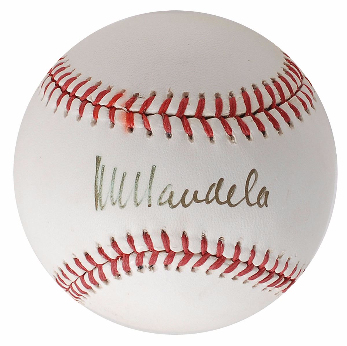 Rawlings Official League baseball signed on the sweet spot in gold ink, “N. Mandela.” In fine condition. A highly unusual format sought after by collectors.