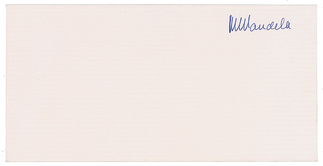 Off-white 8.5 x 4.25 mailing envelope with reverse flap bearing an embossed silver seal of the "Office of the President," signed on the front in blue ink, "N. Mandela." In very fine condition.