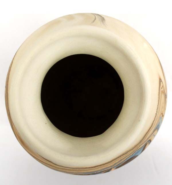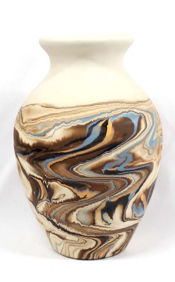 Massey Estate: Nemadji Indian River Marbleized Pottery Vase, measures 10.5''H x 7''D, marked on the bottom, FYI: ''Nemadji Tile and Pottery started production in Moose Lake, Minnesota, in 1923. , Nemadji Pottery has a very distinctive look. It is typified by its swirled paint look, which was developed by Eric Hellman in 1929. Hellman went on to work for Van Briggle Pottery before World War II and opened the Garden of the Gods Pottery in Colorado Springs in 1950. The last Nemadji Pottery was produced during 2002. The pottery's name, which roughly translates as ''left-handed,'' originates from the Ojibwa language; however, the craftsmen originated mostly from Scandinavia.''