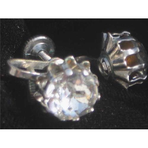 Here is a great pair of screw back earrings. From an estate sale. I don't know the year of these beauties but they are a great look. In excellent shape.<p>These sport a beautiful faceted 9mm crystal. Set in a silver tone setting. These are beautiful earrings and will look stunning on! Isn't this what Cinderella wore to the ball?.<p>These are stamped Nemo.