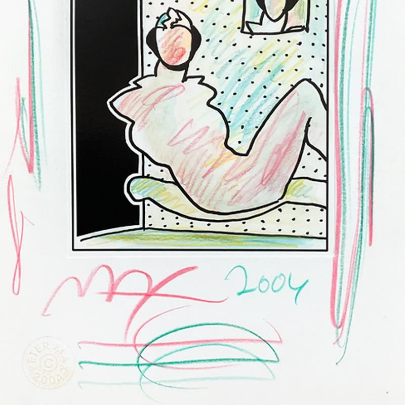 "Neo Pop Series (Neo RZF883)" is a one-of-a-kind mixed media on paper, hand signed by Peter Max. The piece comes custom framed with a backside cutout to display Peter Max Studio registration number 339260 certifying authenticity. Measures approx. 22.5" x 21.5" (frame), 8" x 6" (image). This item requires special handling and may have a longer than usual turnaround.