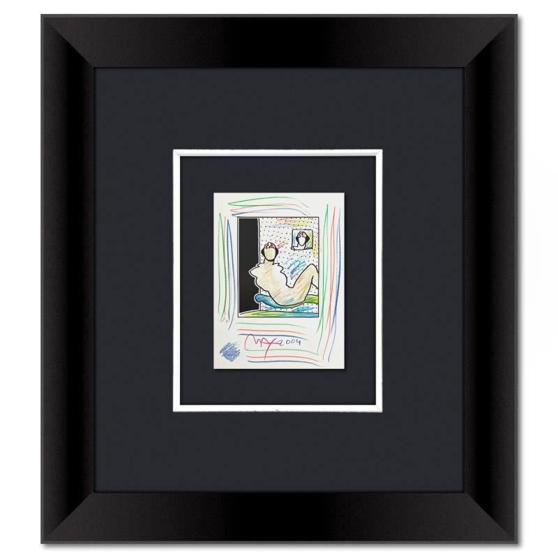 "Neo Pop Series (Neo RZF883)" is a one-of-a-kind mixed media on paper, hand signed by Peter Max. The piece comes custom framed with a backside cutout to display Peter Max Studio registration number 339280 certifying authenticity. Measures approximately 22.5" x 20" (frame), 8.5" x 6" (image). This item requires special handling and may have a longer than usual turnaround.