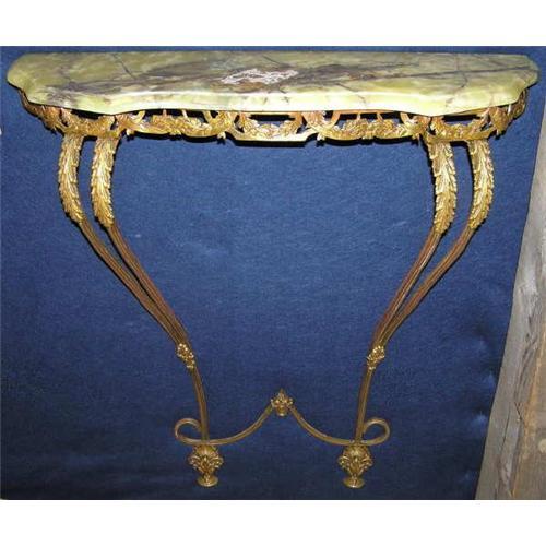 <tr><td>Title:Neoclassical Onyx & Brass Wall Console Table</td></tr>