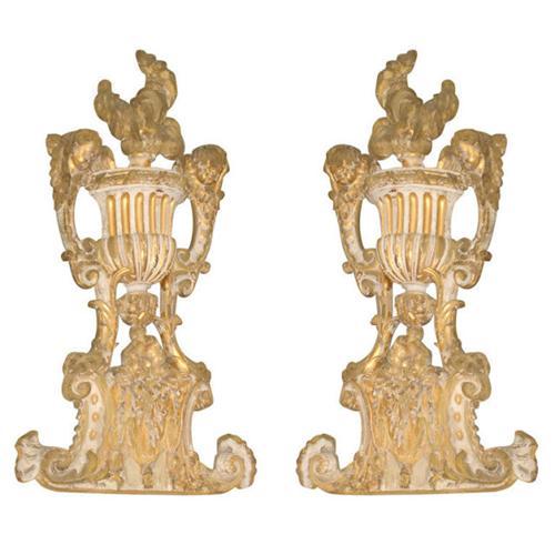 Each relief carved in the form of a campana urn, outset scrolling handles, ending in lion's paw feet, aristocratic orgin