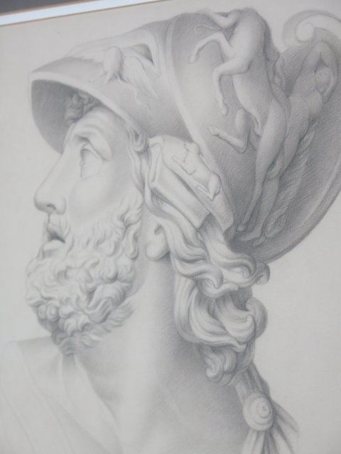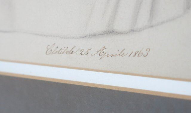 Mounted in silver frame. Signed & dated 1863. Approx. 13.5" x 10.5" unframed, 22.5" x 18.75" framed. Good condition.