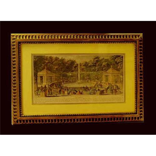 Absolutely fantastic European neoclassical print. The piece depicts a European fountain landscape scene. Housed in its original gilt wood frame. This piece would make a great gift or addition to any fine household or European Art collection.