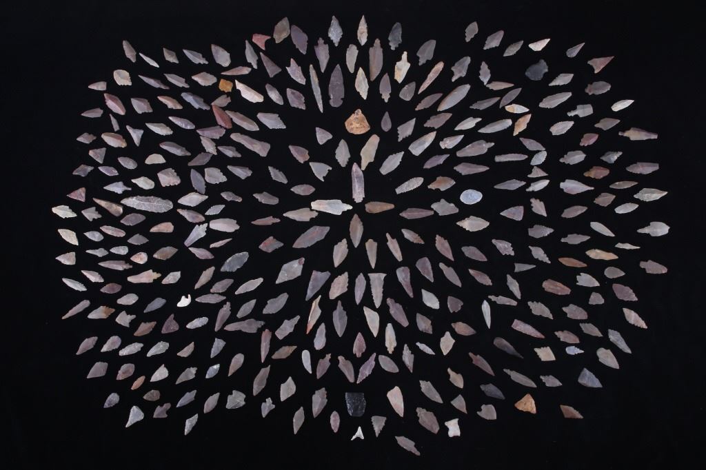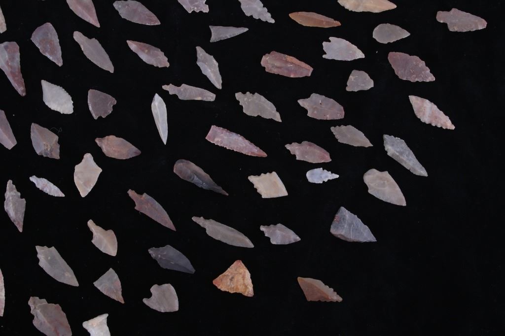 For your consideration in this lot is a collection of approximately 500 African Neolithic-to-current stone projectile points. This is a diverse collection of stone projectile points and blade tips made by various people and cultures. The stones show a creamy white, pink, beige, orange, black, red, and shades of gray. The points range in size from 2 3/4" long to 7/8" long. These points are uncounted and unsearched. These points are of various condition.