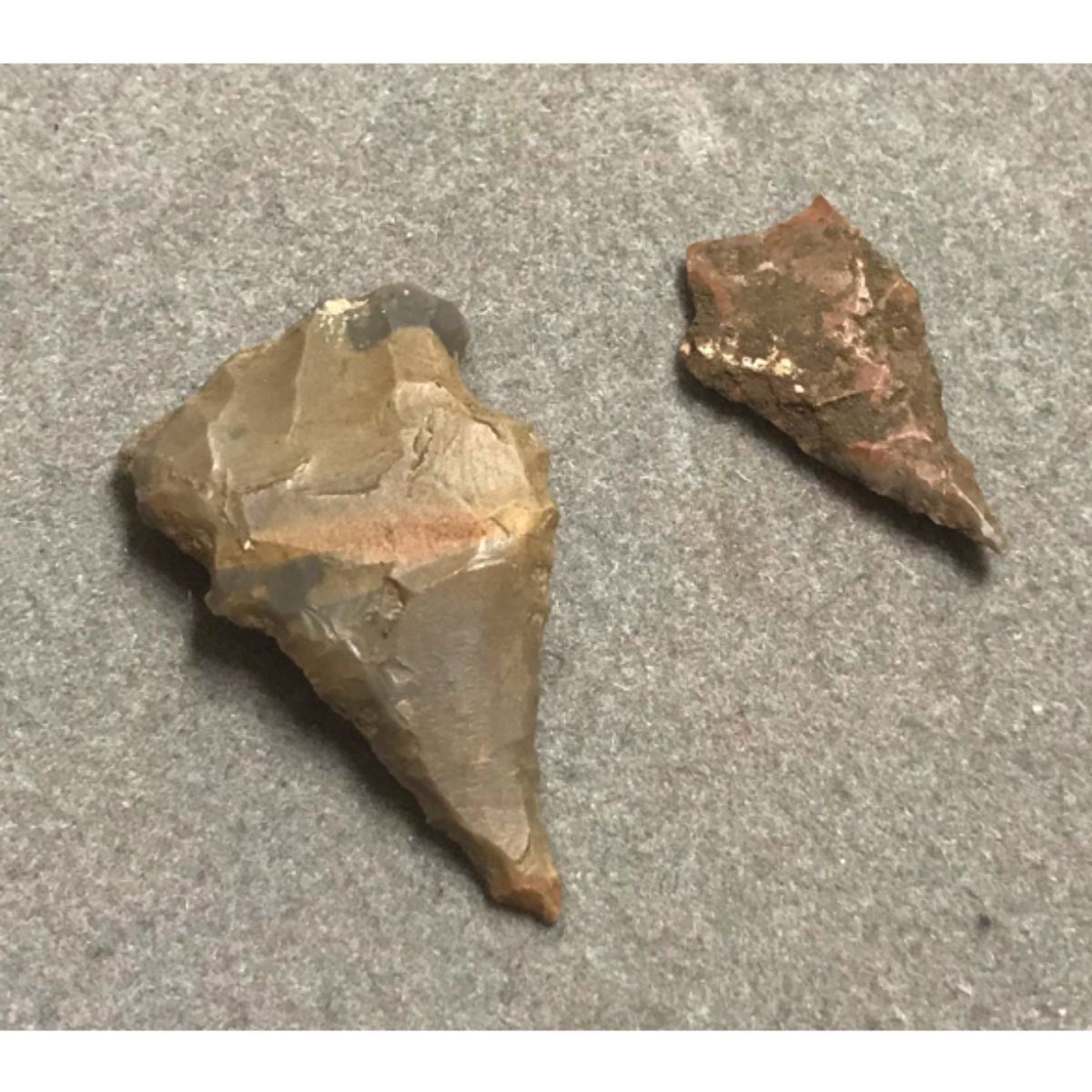 Neolithic Stone Age arrowheads, projectile points, artifacts surface gathered by indigenous nomadic tribes during their travels across the Sahara Desert in Africa. Approx 3000 - 5000 years old. 7/8" - 1 1/4".