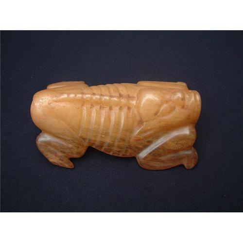 Archaic Chinese rock crystal carving dating to Hong Shan neolithic culture. While the neolithic jade carvings are relatively abundant on the collectors' market, the rock crystal carvings are extremely rare and not found even at world major museums. This is an authentic neolithic carving similar in carving to the jade statues of Hong Shan culture in Northern China. It represents a mythological animal with human head and in shape of a quadruped animal. As there are no records of the customs of this period, we assume that this large statue was used as a veneration idol. The animal represented shows signs of starvation as proeminent ribs and spine. Apparently, in the neolithic period, the fasting was considered as a way of elevation of the spiritual status above the earthly body functions. At first sight, this statue appears as is carved in yellow jade. A close scrutiny, reveals that despite opaque appearance, the carving was done in transparent rock crystal that with the age became semi-opaque, similar to crystalized honey. Also, the hardness is much less even than the fossilized jade. Superficial micro-erosion is seen only with a magnifying glass. Provenance: Dr. Veleanu's collection, the author of the collectors' textbook: "Jade, 5000 BC to 1912 AD, Guide to collectors" and the owner of Objets d'Art Uniques Internet store. Estimated value: $10.000.