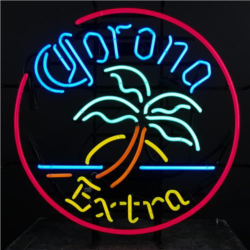 Neon Sign: Corona Light w/ Palm Tree Circle shaped