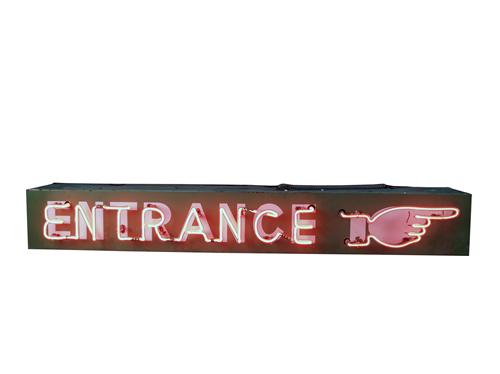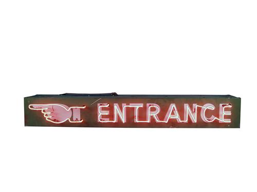 Neon Sign "Entrance" w/Pointing Thumb Two Sided from the Valley View Lodge near Cody WY.