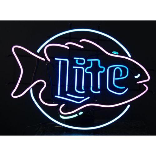 Neon Sign Miller Lite w/ Fish Shaped Border Approx. 32 x 24