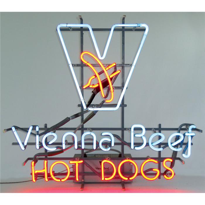 Neon sign for Vienna Beef, blue & red neon, VG working cond, 19"H x 20"W.