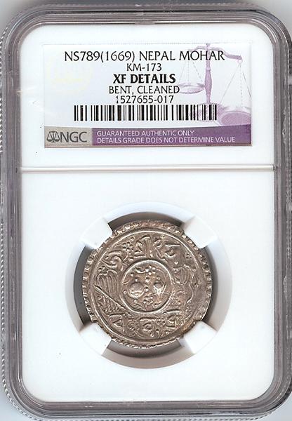 KM-173 Slab states that the coin is bent and cleaned. Careful inspection shows that the faln looks a bit wavy but not bent.
