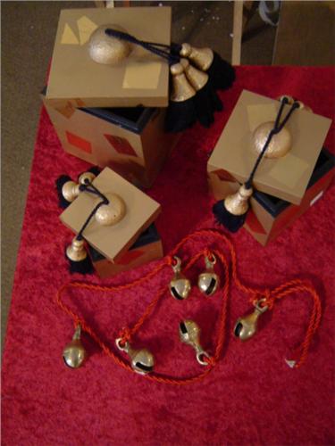 Set of 3 Nepalese Tassel Boxes, 5", 4" & 3" cubes, 40" String with 6 brass bells