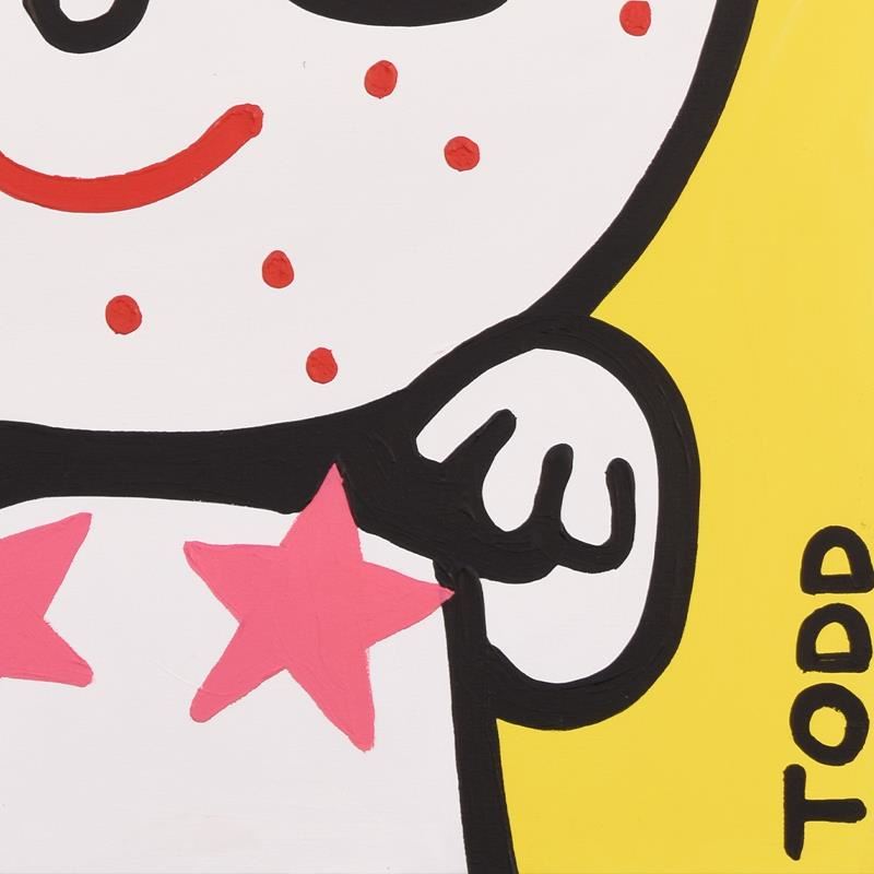 "Nerds Gone Wild" is an original acrylic painting on gallery wrapped canvas by Todd Goldman, hand signed by the artist. Includes Letter of Authenticity. Measures approx. 24" x 36" (image). Due to the way this piece was stored there may be minor wear or signs of age (such as wear on the corners) but the piece is in overall good condition.